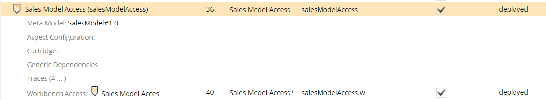 The Customer entity belongs to SalesModel, which in turn is associated with Sales Model Access. This access is of the type SMOOD, meaning that the metadata is resolved.